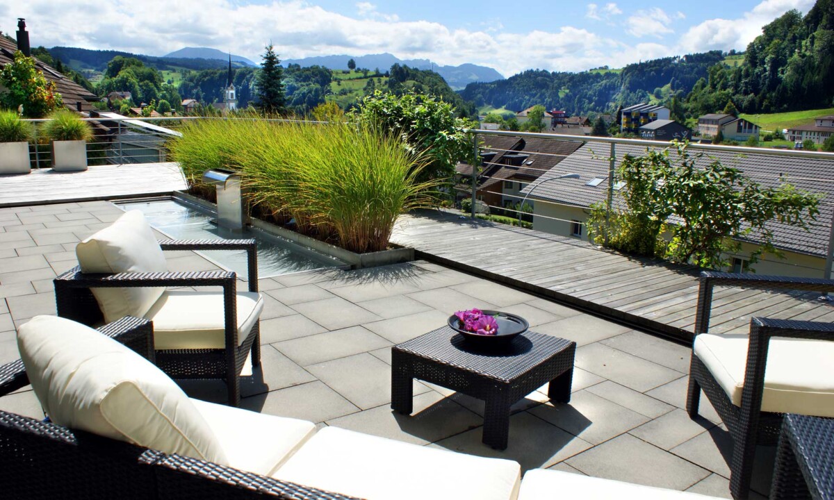 In der Gestaltung von weiträumigen Terrassen- und lauschigen Balkongärten haben wir langjährige Erfahrung und kennen uns bestens aus bezüglich der spezifischen Herausforderungen wie Statik, Be-/Entwässerung, geeignete Bodenbeläge und Bepflanzung sowie Logistik in Hochhäusern: Setzen Sie auf uns – wir machen Ihren Terrassengartentraum wahr.