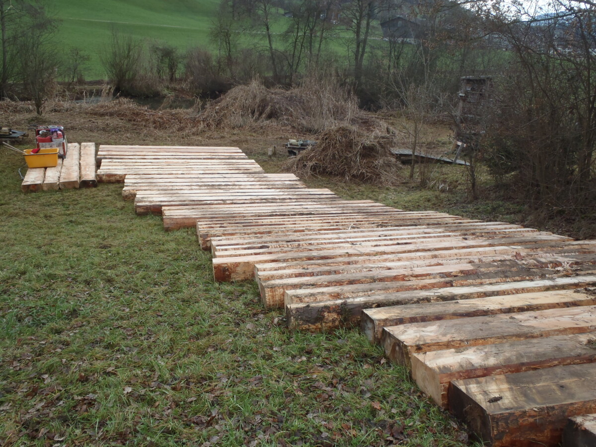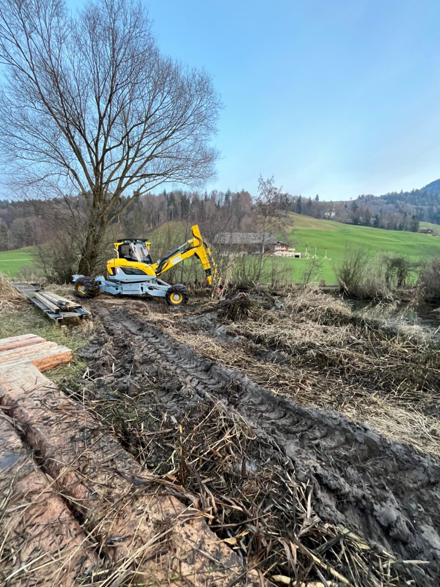 Für die Arbeit mit den Maschinen musste speziell eine Baupiste erstellt werden, damit der Boden nicht zu stark in Mittleidenschaft gezogen wurde.