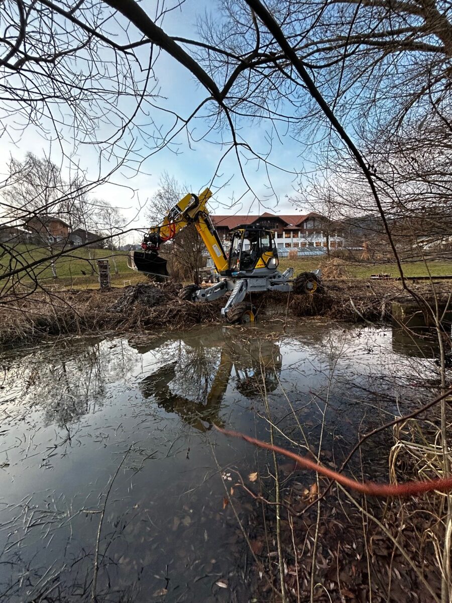 Durch das wegschneiden der Gräser und Freiholzen des Gehölzes sowie dem Ausbau des verschlammten Materials, konnte der Flachwasserbereich ausgeweitet werden. Zum Schluss wurden Strukturelemente und Amphibienbrücken gebaut, damit Flora und Fauna in einer ausgewogenen Symbiose vereint sind und zusammenleben können.
